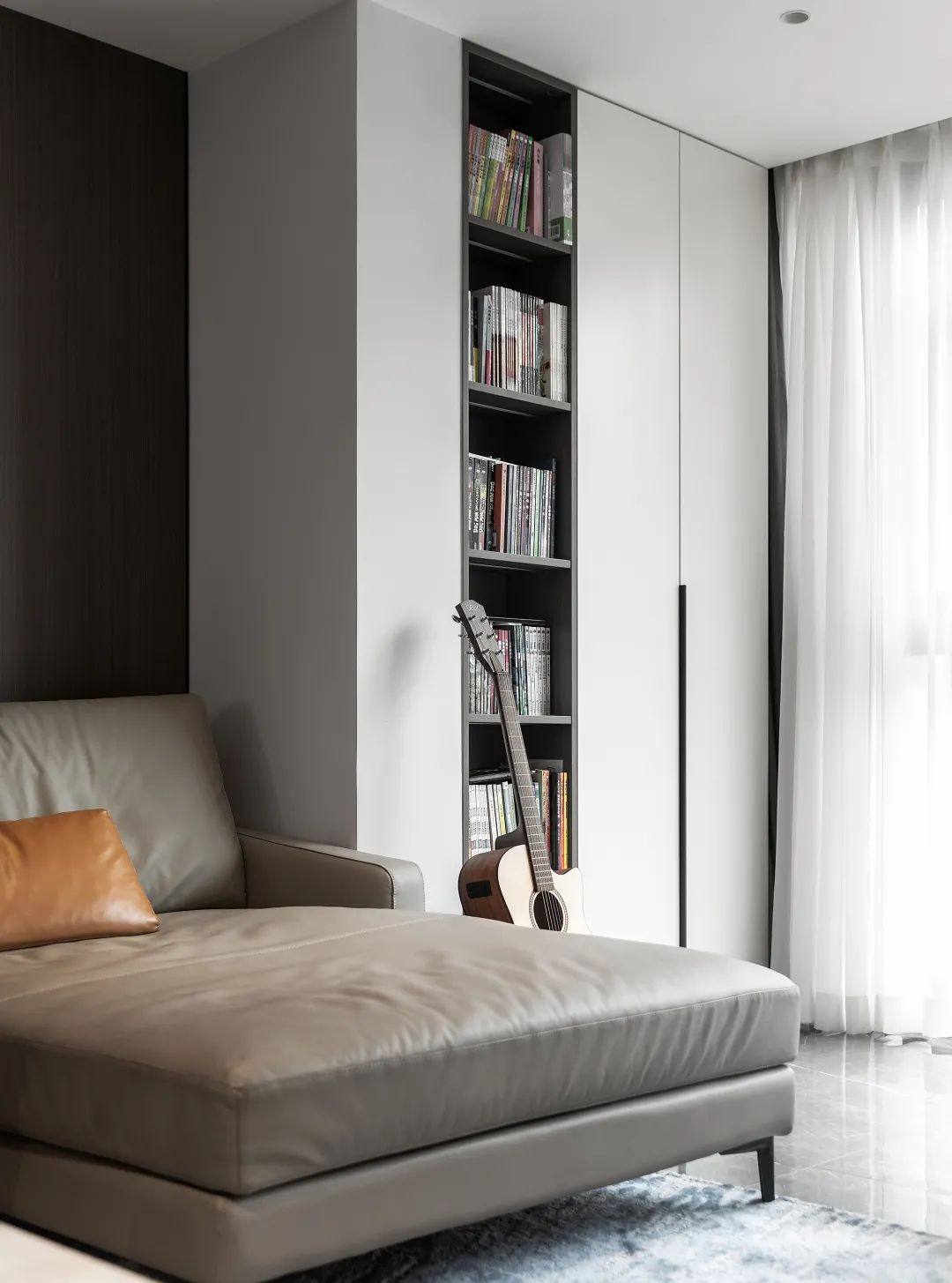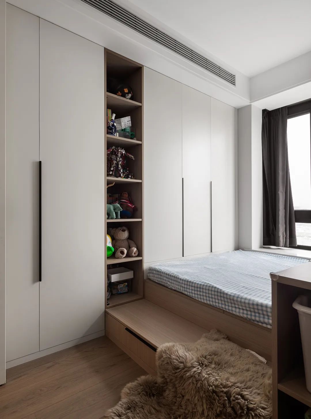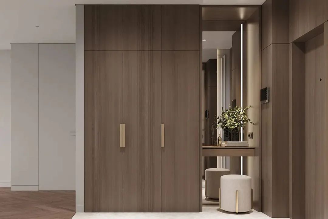 當然你還可以做嵌入式滿墻多功能柜,可以是書柜,也可以是衣柜,日常收納游刃有余。