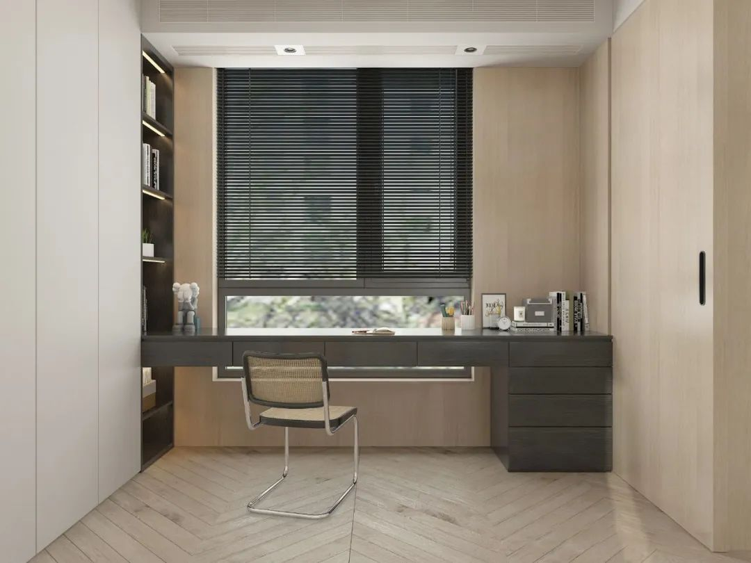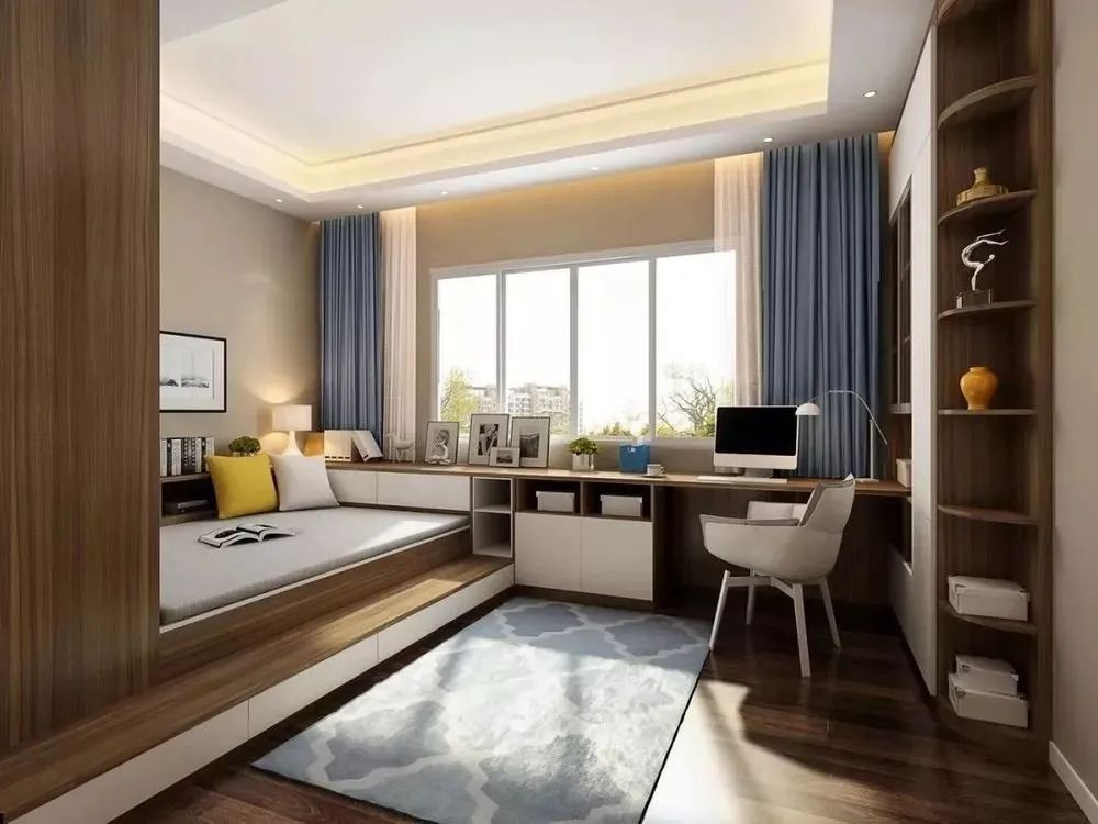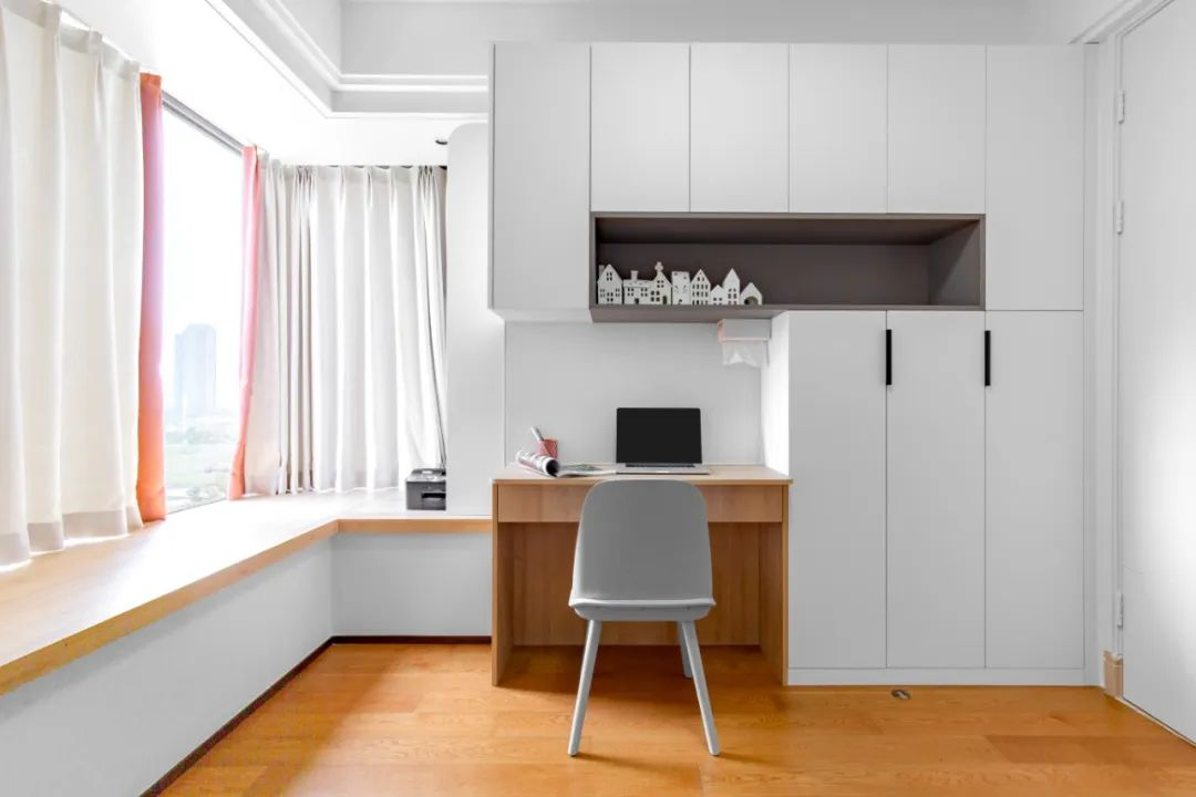 但如果空間較狹窄,則可以充分利用飄窗四周空間,設計出一款書柜與書桌相結合的一體式柜子,這下就再也不用羨慕別人家有書房了!