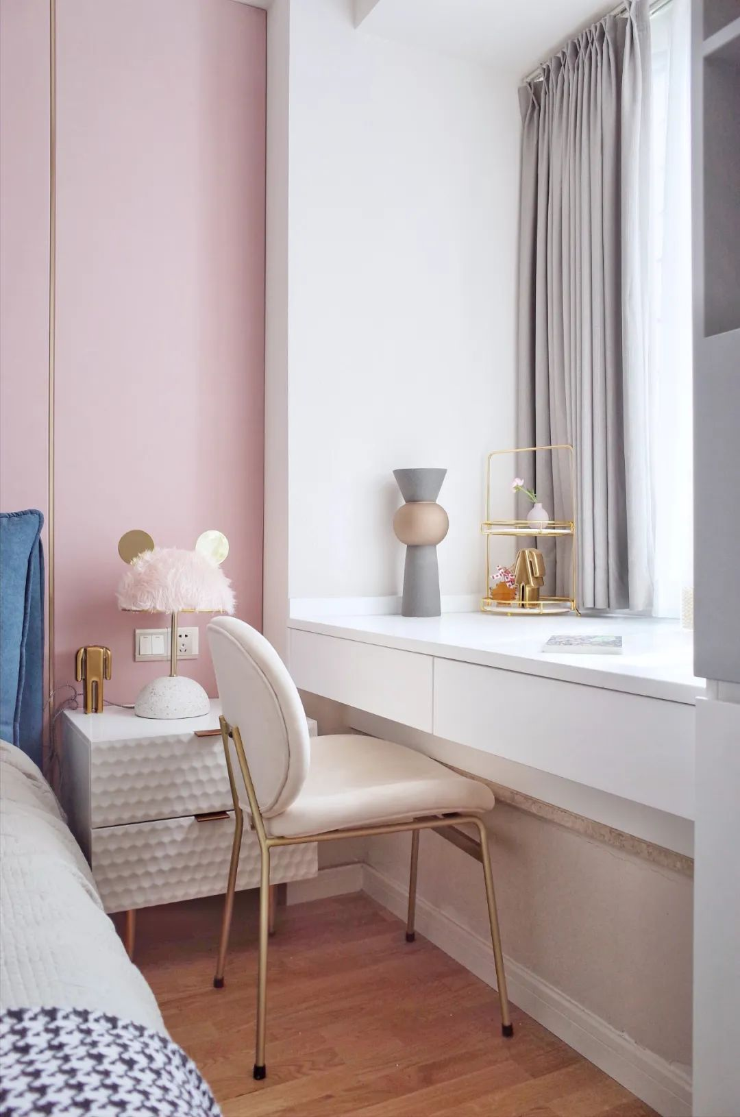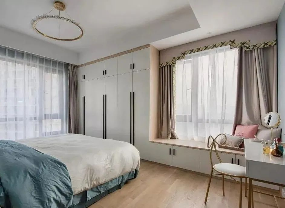 如果家中的飄窗是不能拆改的,那么還可以直接在飄窗的上方加抽屜,增加收納空間,非常實用。加高了飄窗后,還能把飄窗設計成梳妝臺,讓小臥室也更加實用。