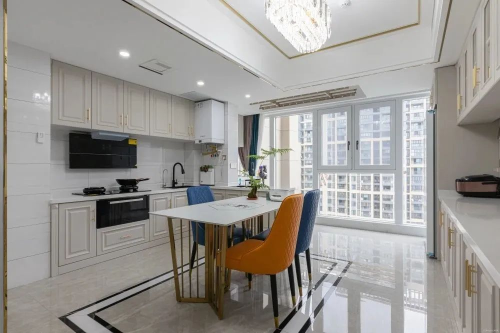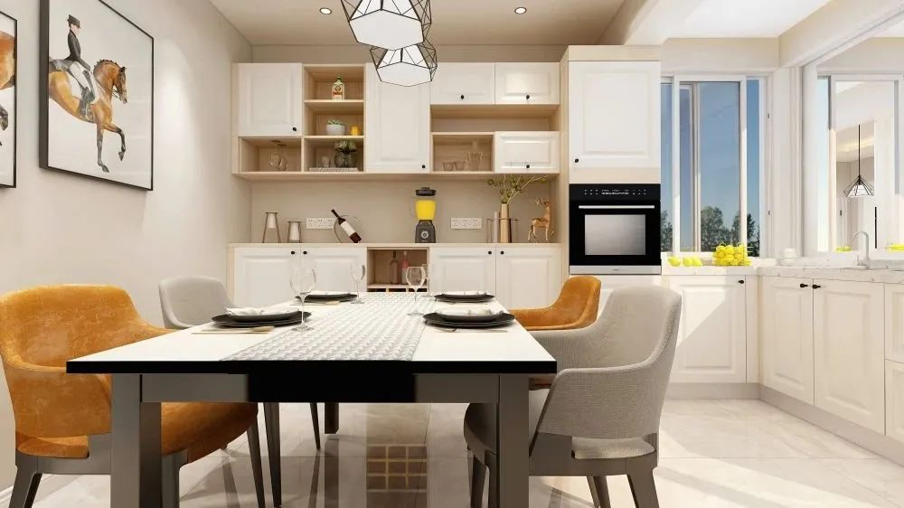 把餐廳和廚房作為一個統(tǒng)一的空間來做規(guī)劃,餐廳緊挨廚房,實(shí)現(xiàn)餐廚一體化設(shè)計,提高空間利用率。