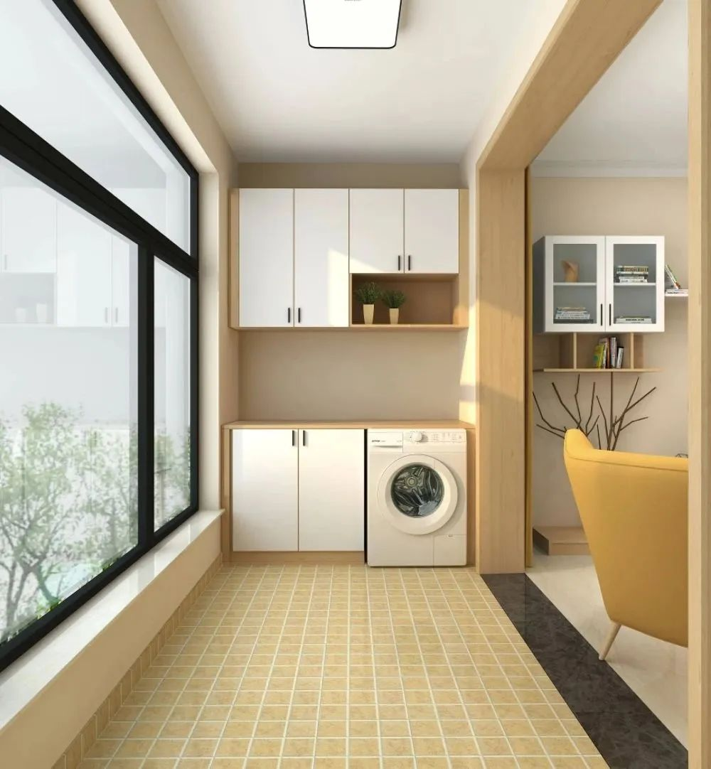 打通陽臺能很有效讓家里的空間變大。而且,擴(kuò)入客廳的陽臺空間,除了能晾曬衣物,還能打上陽臺柜儲物用,也可以增加書桌打造成書房、辦公區(qū)使用。