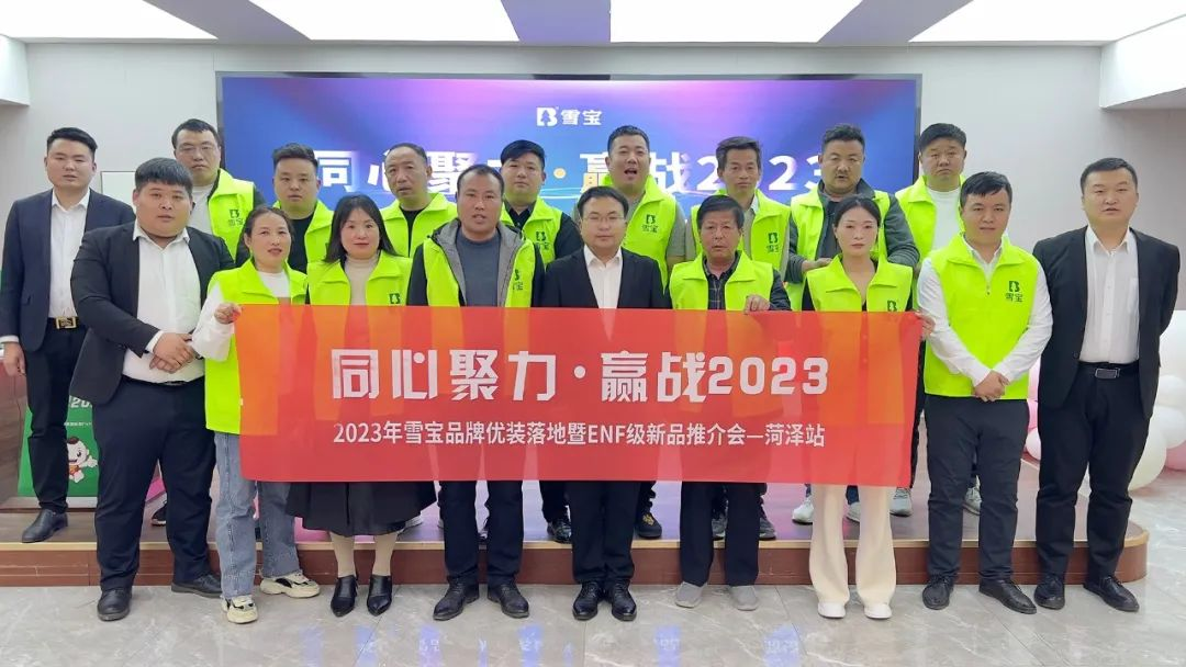 為持續鞏固合作基礎,著力擴大發展成果。3月28日,以“同心聚力·贏戰2023”為主題的雪寶品牌優裝落地暨ENF級新品推介會“菏澤站”成功召開,來自菏澤地區10多家優秀合作伙伴齊聚一堂,共創共贏。
