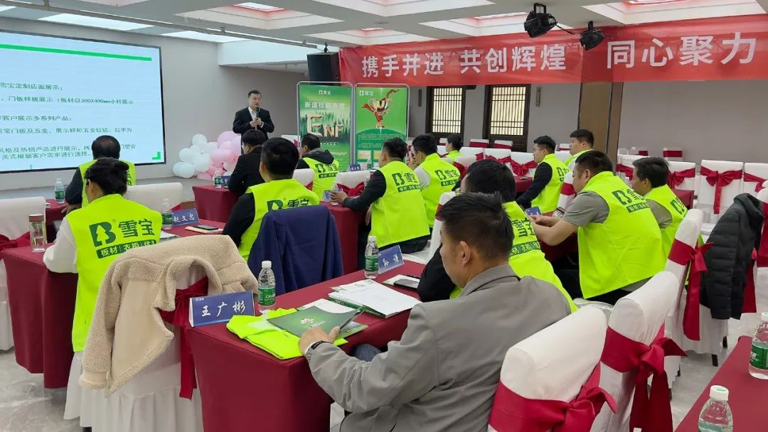 本次活動從雪寶優裝盈利模式解析、雪寶優裝3.5終端形象店標準模式解讀、雪寶ENF級環保板材產品介紹、雪寶五金產品講解等展開課程講述,強化菏澤地區經銷商伙伴對品牌和產品的核心競爭力,通過細述差異化的獨特賣點,相較同類產品,優勢顯著,大大提升了合作客戶的信心!