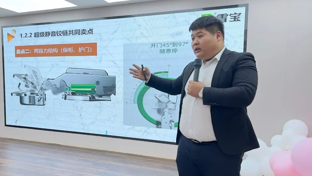 雪寶華北家具板事業部山東省區經理趙蘭仕先生現場講解雪寶五金產品知識,從產品研發、使用性能、生產工藝、營銷設計、產品質檢體驗,以及品牌強大售后服務等多維度展開系統、專業的介紹,幫助各位合作伙伴在一次的清晰了解雪寶五金的核心差異化優勢。