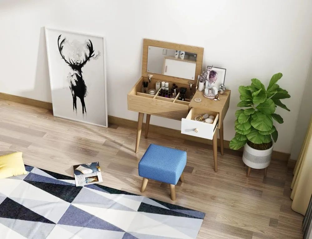 女為悅己者容的時代已經過去了,現在女生化妝更多的是為了讓自己心情好。將梳妝臺與床頭柜合二為一,可謂是強強聯合。