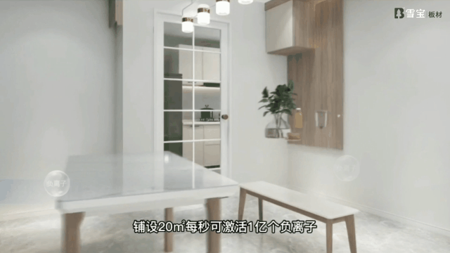 雪寶負離子醇香板通過在裝飾表面中融入長效“負離子”,實現板材有效釋放負離子長達15年之久,并且在常溫常態下持續釋放負離子。每立方米每秒釋放出800—1800個具有“空氣維生素”之稱的負離子,720°全方位覆蓋全房各個角落,有效改善空氣中的游離的有害物質,能將甲醛分解為水分子與無毒無害的“肟”,實現清除室內甲醛、凈化空氣的效果,從而更大程度的起到室內空氣凈化和降低甲醛釋放量的作用。
