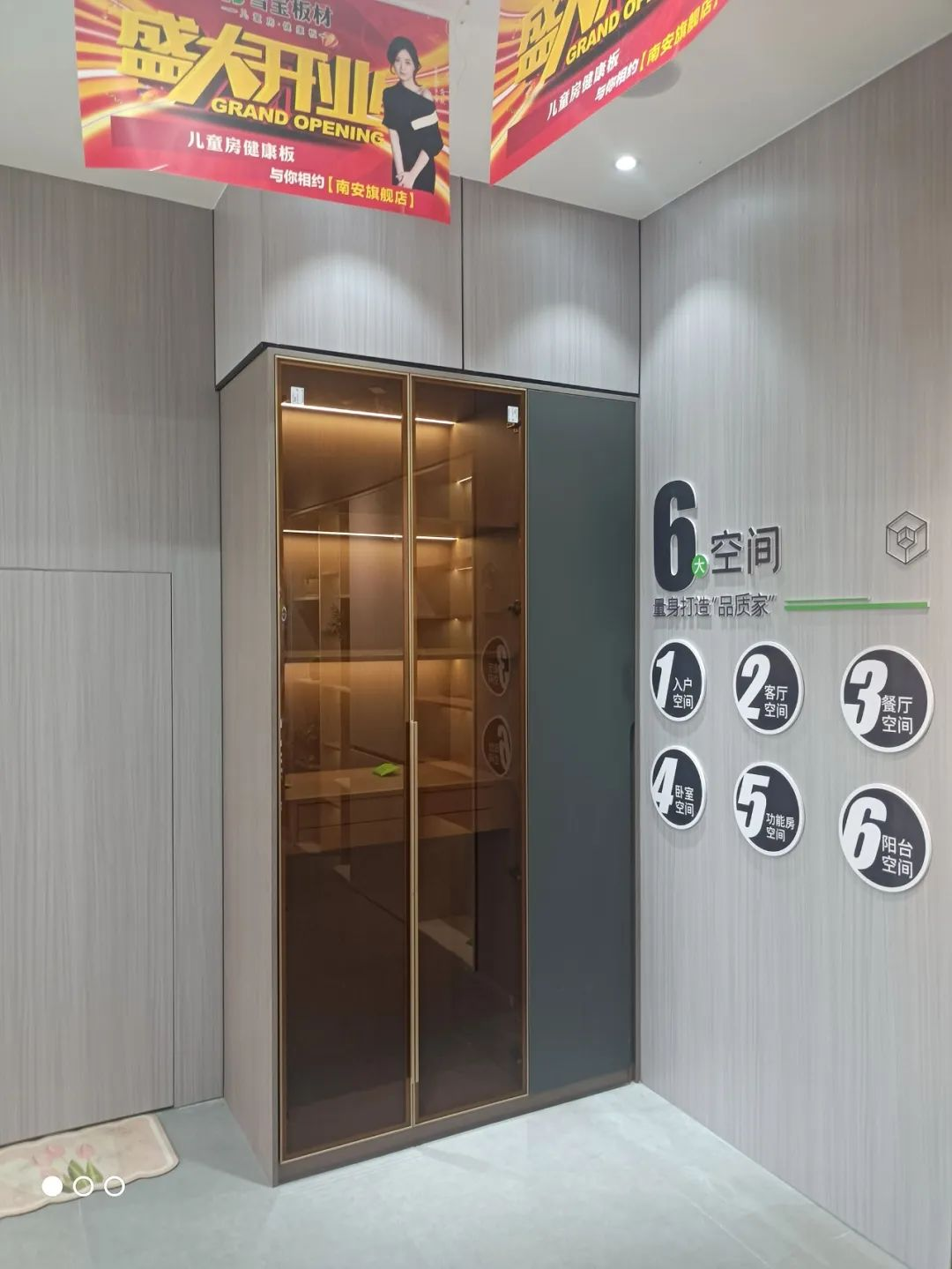 雪寶定位兒童房健康板的獨特差異化優勢,讓品牌理念和高環保高品質產品等標簽深入人心。雪寶泉州南安店在終端形象設計上,緊跟時代潮流,在門店產品陳列、全屋空間展示、門墻柜一體化設計等方面大力迎合消費趨勢,營造居家氛圍體驗感。