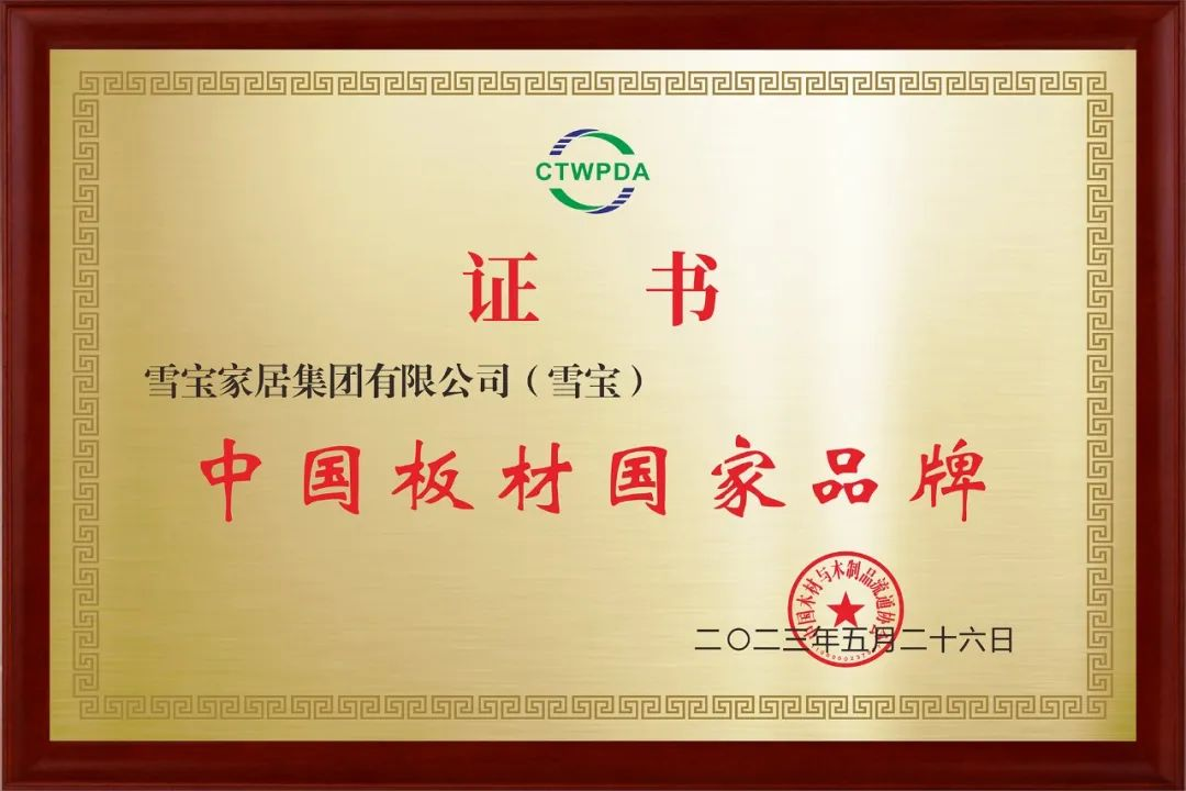 - 閃耀丨雪寶榮獲國字號“中國板材強國品牌”榮譽稱號