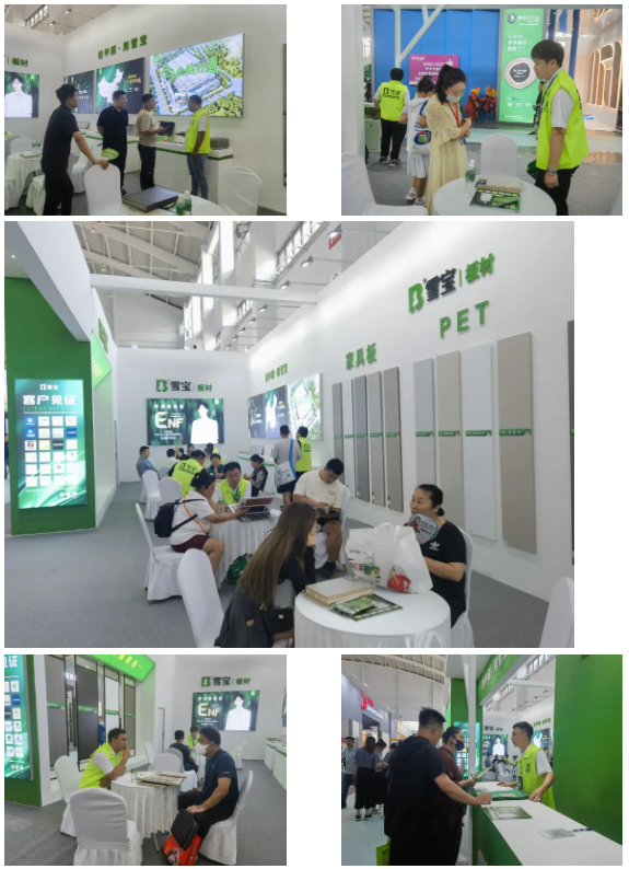此次展會,前來雪寶板材展區咨詢的客戶絡繹不絕,現場人聲鼎沸,熱鬧非凡。雪寶品牌華北營銷中心的精英們在陳總的帶領下,火力全開,全體人員都展現出信心百倍與無懈可擊的氣勢,全力以赴堅決不錯過每一個客戶,用專業技能服務和解決客戶疑難點。通過精心設計,雪寶展館奪目大氣,成為會場矚目的焦點。雪寶生態板、家具板、配套五金、主流柜門等系列產品悉數亮相,同時雪寶ENF級系列產品也得到眾多客戶的選擇和信賴。