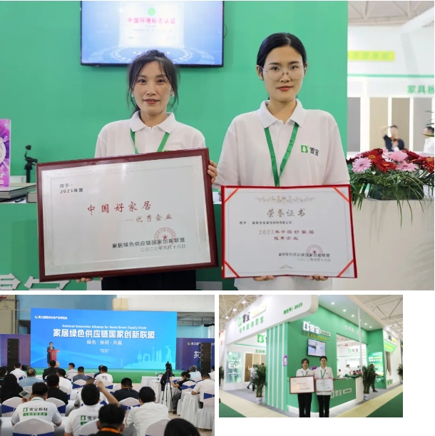 在本次木博會期間,第三屆家居綠色供應鏈國家創新聯盟會議也同期舉行。雪寶憑借優質的產品與高效的服務在眾多品牌中脫穎而出,榮獲“2023年中國好家居優秀企業”榮譽稱號,再一次用實力證明了產品品質得到了廣大消費者和市場的認可,雪寶將以品牌強勁的實力、號召力、影響力持續引領家居建材產業轉型升級,邁向高質量發展的全新階段。