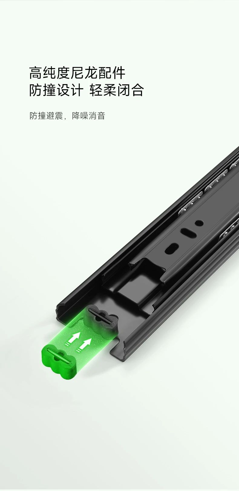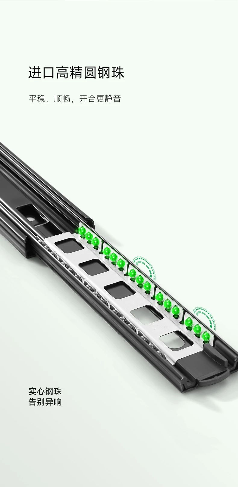1、上海寶鋼原材料,高光封閉電鍍,抗銹能力極強(qiáng);2、加厚三節(jié)鋼珠抽屜滑軌,標(biāo)準(zhǔn)厚度,經(jīng)久耐用;3、進(jìn)口高精圓鋼珠,平穩(wěn)、順暢,開合更靜音;4、三節(jié)軌全拉出,抽屜一覽無余,空間最大化;5、承重30kg,平穩(wěn)堅(jiān)固;6、防撞膠墊,降噪消音;