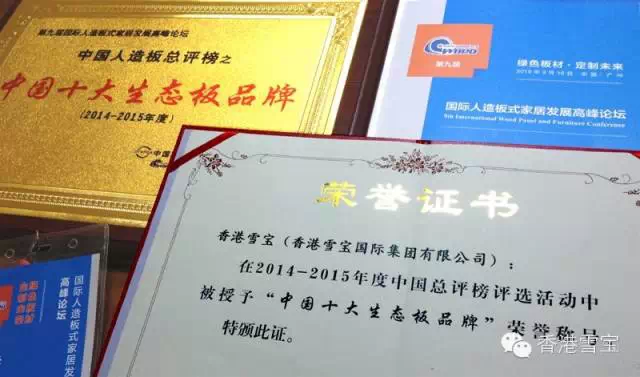 天道酬"精":雪寶板材榮獲“中國(guó)生態(tài)板十大品牌”
