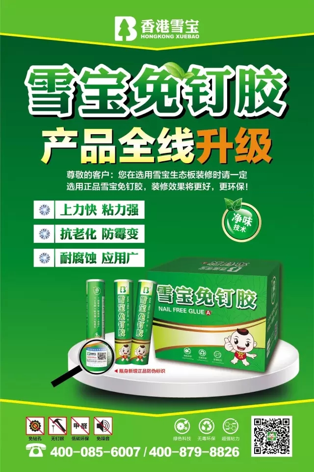 為了讓您的家居裝飾效果更佳,在購買雪寶板材時,請配套使用雪寶免釘膠等輔材哦!