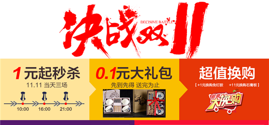 在家居建材板材類目中雪寶兒童房健康板對于網(wǎng)上營銷頗有心得。超級讓利冰點破價,最高300元抵現(xiàn)的優(yōu)惠活動,單張E0級的環(huán)保生態(tài)板材的優(yōu)惠最高達(dá)65元,還特別推出了0.1元特權(quán)禮包搶購的活動、1元秒殺的活動,避免了雙十一物流的高峰擁堵,使用戶體驗大幅提升。
