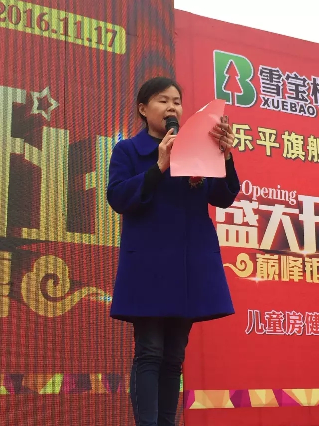 ▲雪寶板材樂平專賣店吳總為開業典禮致辭