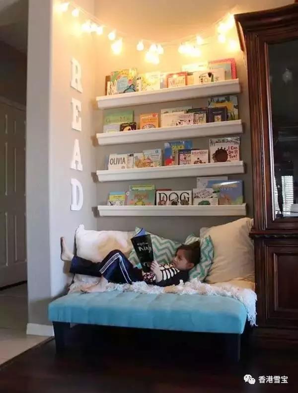 ▲利用房間的角落,做一個簡易的閱讀角,培養孩子從小就閱讀的習慣。腹有詩書氣自華,愛讀書的人不管是氣質還是修養都不會太差!