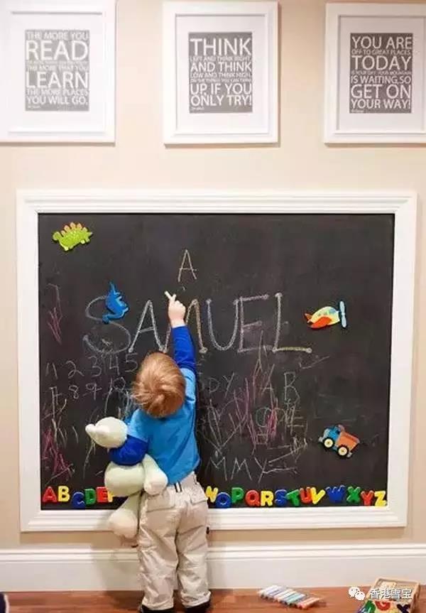 ▲孩童時期正是想象力最旺盛的時候,何不給孩子一個發揮的空間呢?一面黑板墻正好可以滿足孩子的需求和想象。