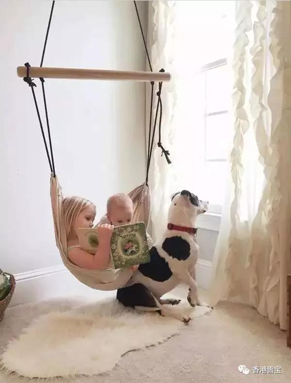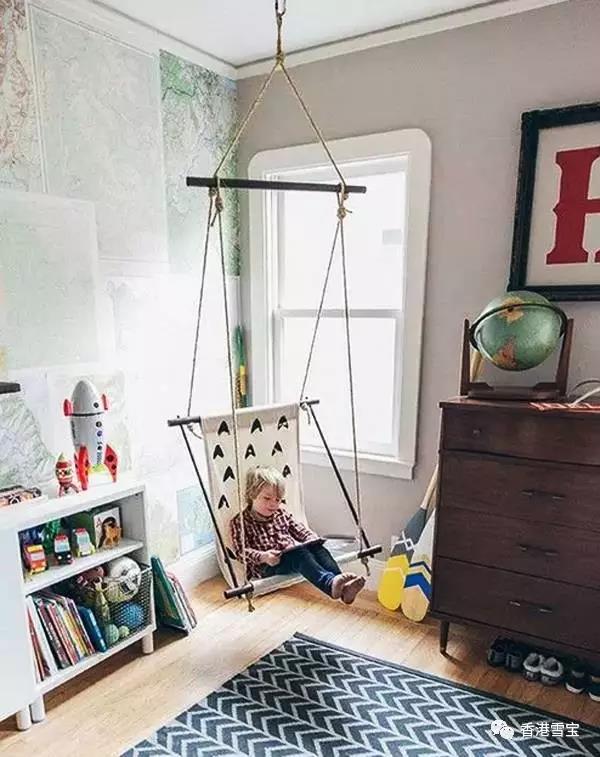 ▲在臥室里裝一個小吊椅看起來不錯。在保證安全的情況下,家庭中適當的娛樂和消遣有助于培養孩子活潑開朗的個性。