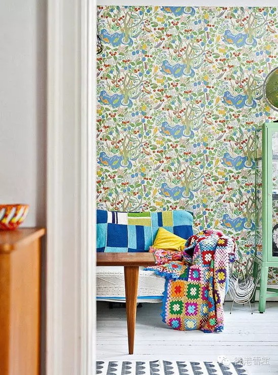 家的一角。在大量素色的硬裝環境下用一些豐富的顏色是首選,避免空間顯得過于平淡,毯子的樣式很有趣味。