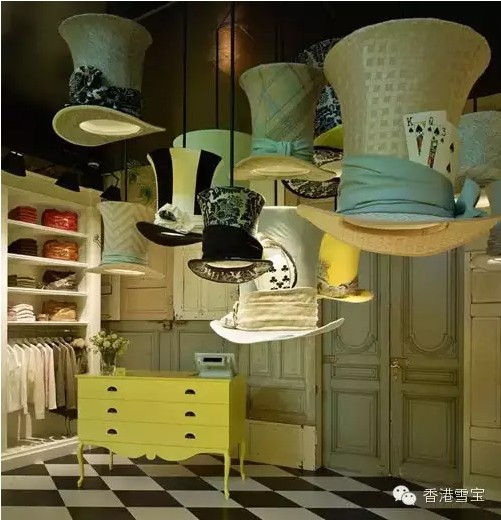 這些夸張的帽子既是燈,又是裝飾物,讓人過目不忘。