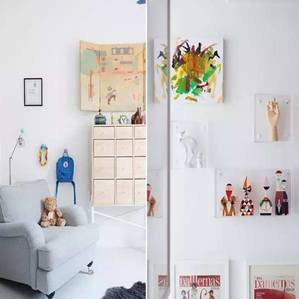抽屜架子+雙開柜子貼墻壘高擺放,不僅節省空間,還提高空間的收納能力。各種顏色的搭配融合,不僅形成強烈的視覺沖擊力,還為空間注入活力,增加童趣。