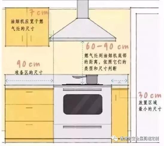 ③燃氣灶到油煙機底部的距離是60cm~90cm。
