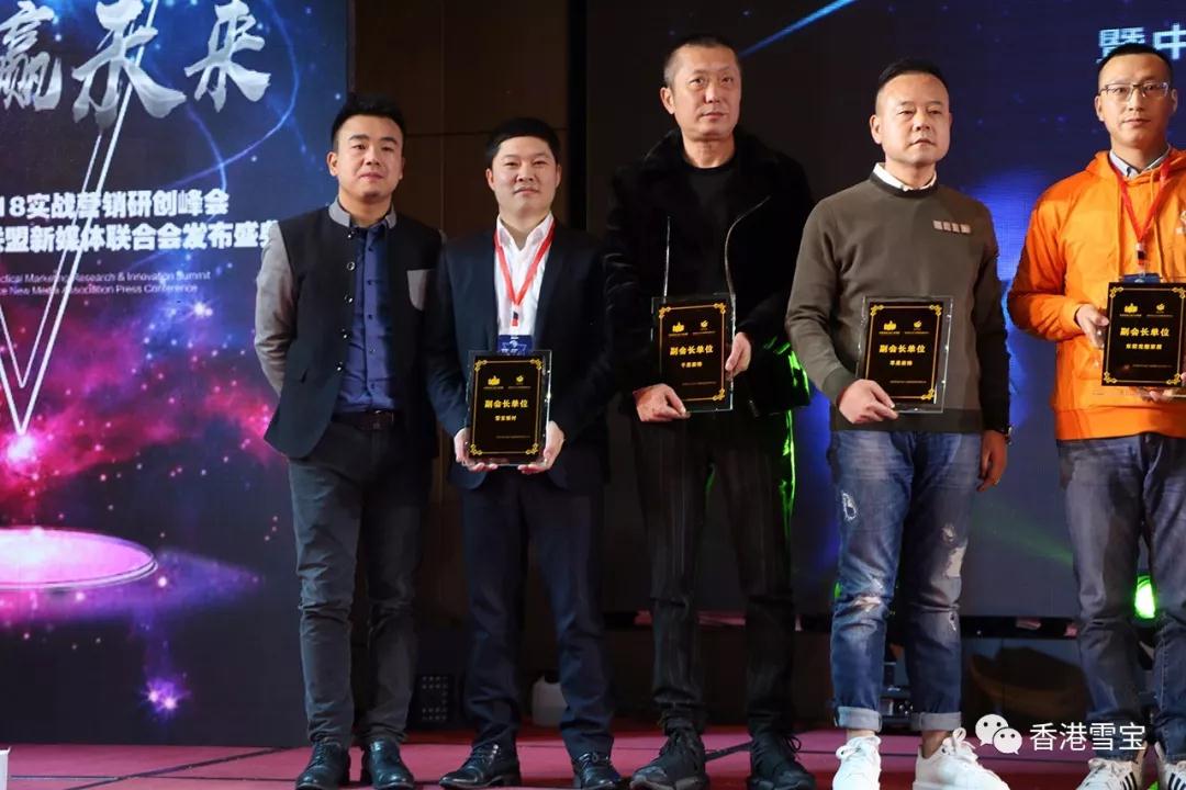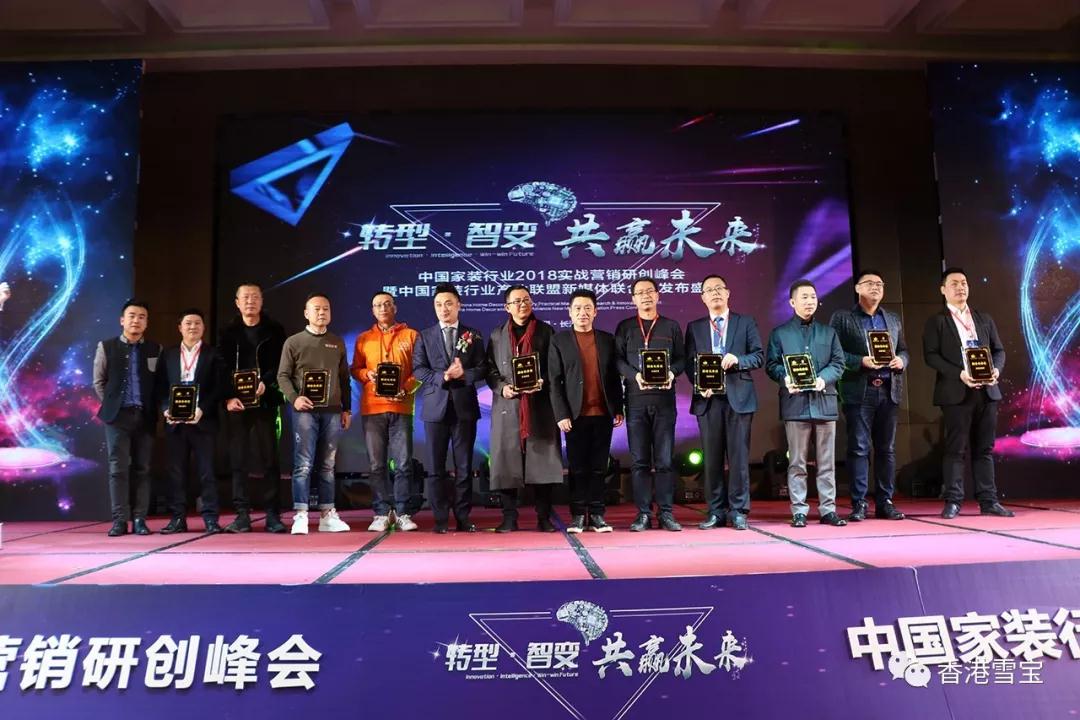 ▲中國家裝行業產業聯盟新媒體聯合會頒獎儀式,雪寶板材榮獲“副會長單位”,雪寶國內營銷中心營銷總經理李杰先生上臺領獎;