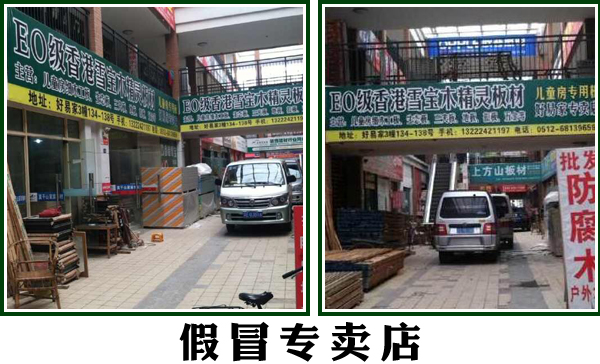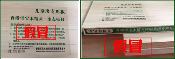 最近個別市場(以蘇州市場為主)出現“雪寶木精靈”板材,其標貼仿造雪寶正品標貼,無生產廠地、無生產許可證號,同時沒有防偽標貼,其假借雪寶名義進行暗箱銷售,對警覺度不高的消費者進行欺騙。此假冒產品一經發現,雪寶集團有限公司已經委派律師聯合當地工商部門對造假窩點及個人進行查處。